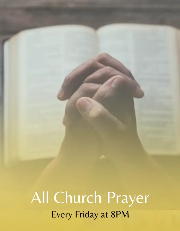 Every Friday, join us for All Church Prayer at Masihi Mandir, uniting in faith and fellowship at 8 PM.